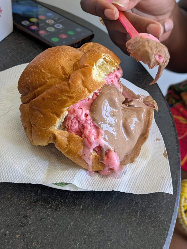 Sundae de son côté aussi n’avait pas non plus apprécié son voyage de l’époque (avant qu’on ne soit ensemble) ; il avait aussi été victime de racisme et il était en plus avec sa petite amie de l’époque très blonde donc ça ne l’a visiblement pas plus aidé.